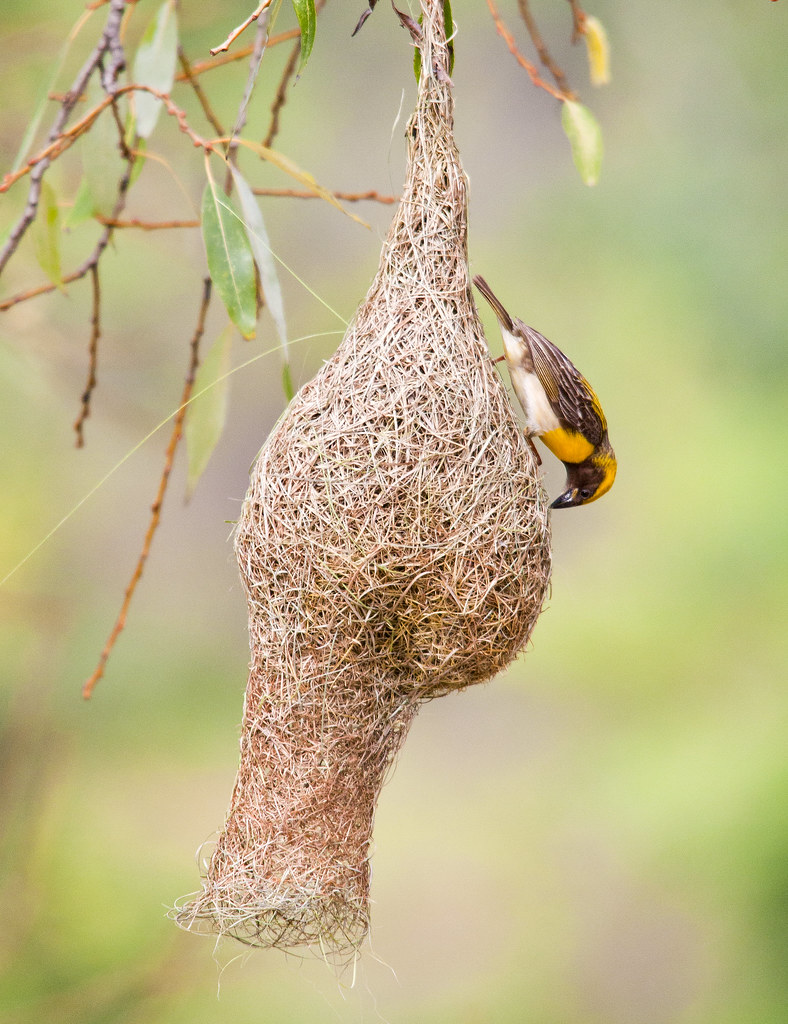 "Baya Weaver Bird -Building nest" by frozen stills is licensed under CC BY-NC-SA 2.0.